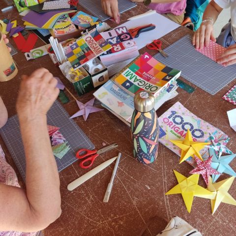 Un atelier chaleureux, autour de la thématique de Noël avec le pliage d’une couronne, du pére Noël, du sapin et de l’étoile porte-bonheur.